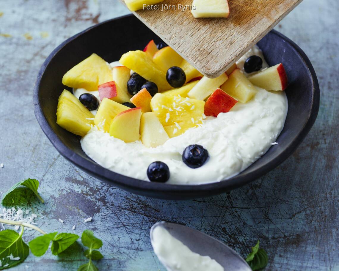 Foto: Jörn RynioExotischer Obstsalat mit Kokosquark