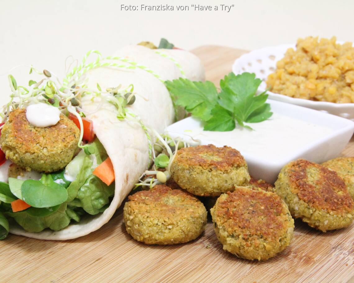 Foto: Franziska von "Have a Try"Falafel-Wraps mit Kichererbsenbällchen, roten Linsen und Sesamsauce