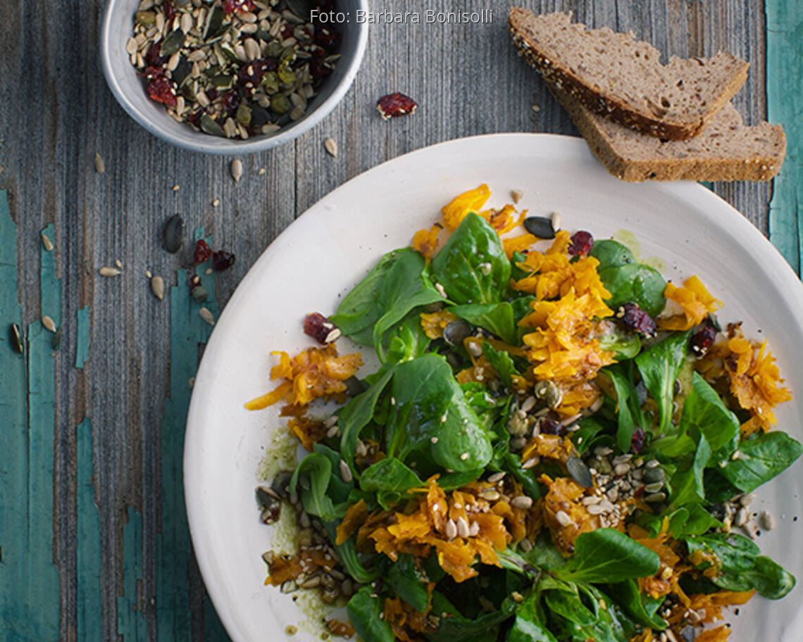 Foto: Barbara BonisolliFeldsalat mit Kürbis und Kerndl-Topping