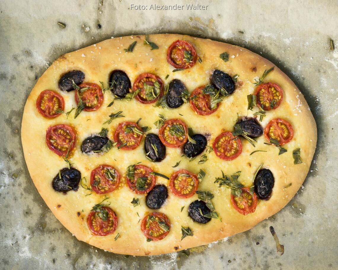 Foto: Alexander WalterFocaccia mit Tomaten und Oliven