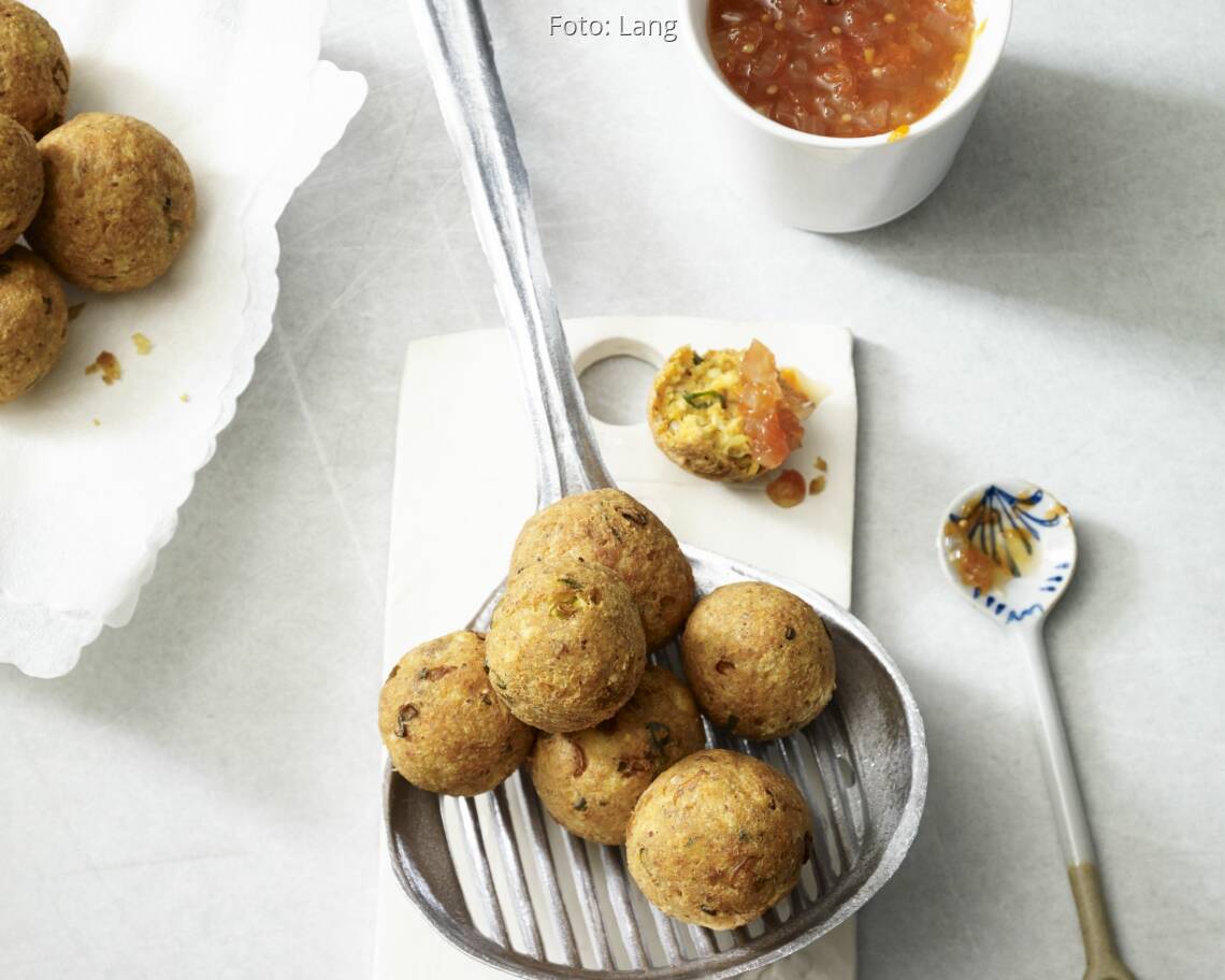 Die Hälfte der Tofubällchen ins heiße Öl geben und in ca. 3 Min. knusprig braun frittieren, dabei die Bällchen wenden. Herausnehmen und auf dem Abtropfgitter abtropfen lassen. Mit den übrigen Bällchen genauso verfahren. Bällchen mit dem Grapefruit-Chutney servieren.