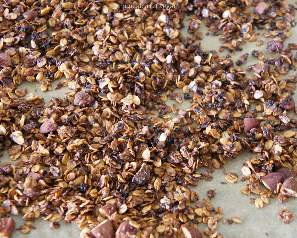 Bei 150 °C für ca. 30–40 Minuten backen. Gelegentlich umrühren und gut im Auge behalten, da es schnell verbrennen kann.