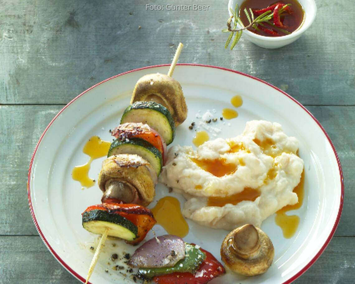 Foto: Günter BeerGebratene Gemüsespieße mit Bohnencreme