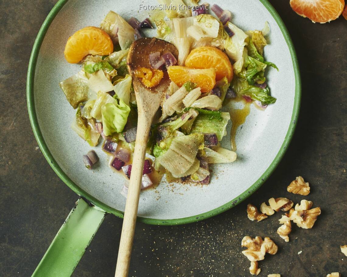 mit Endiviensalat, Zwiebel, Walnüsse, Mandarinen