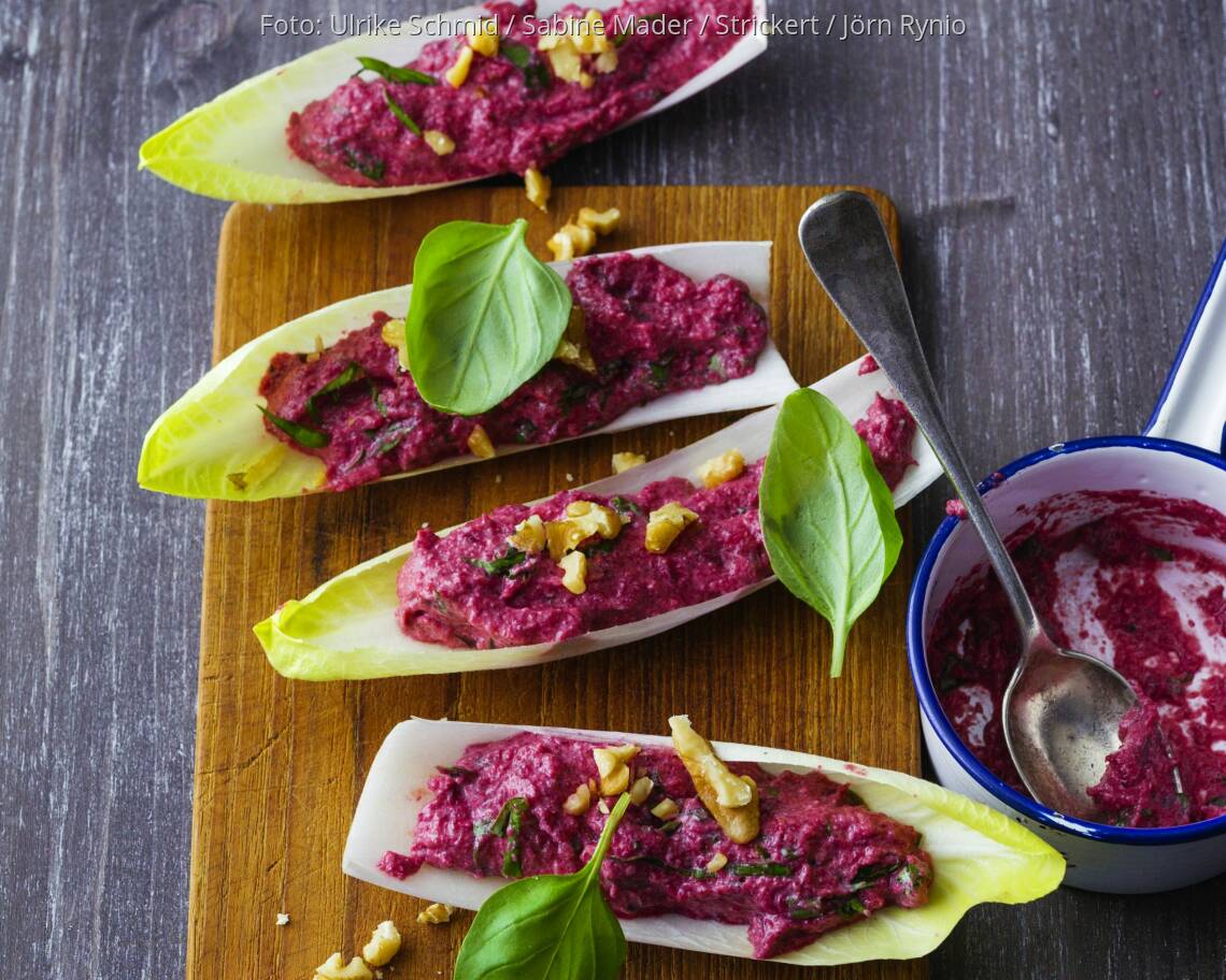 Foto: Jörn RynioGefüllte Chicoréeschiffchen mit Rote-Bete-Schafskäse-Creme