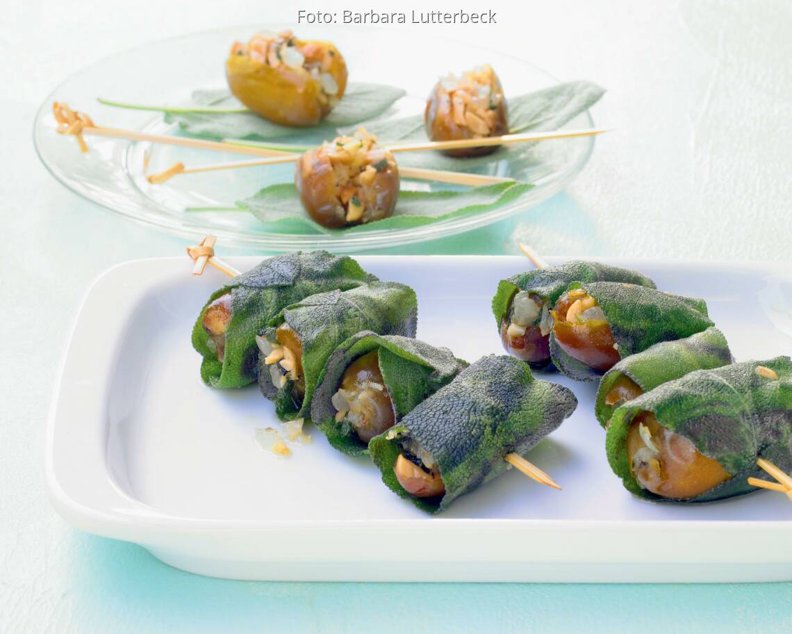 Foto: Barbara LutterbeckGefüllte Datteln im Salbeimantel