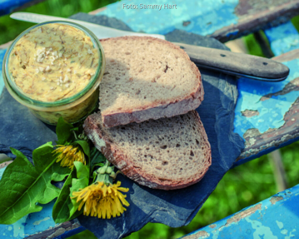 mit Süßrahmbutter, Löwenzahn, Honig, Meersalz