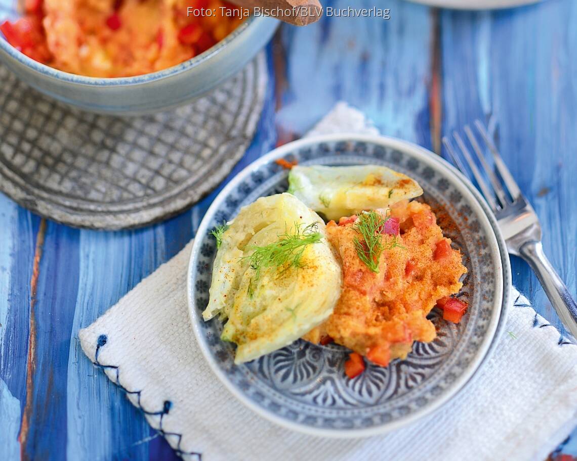 Foto: Tanja Bischof/BLV BuchverlagGratinierte Fenchelknolle an Paprika-Linsenmus