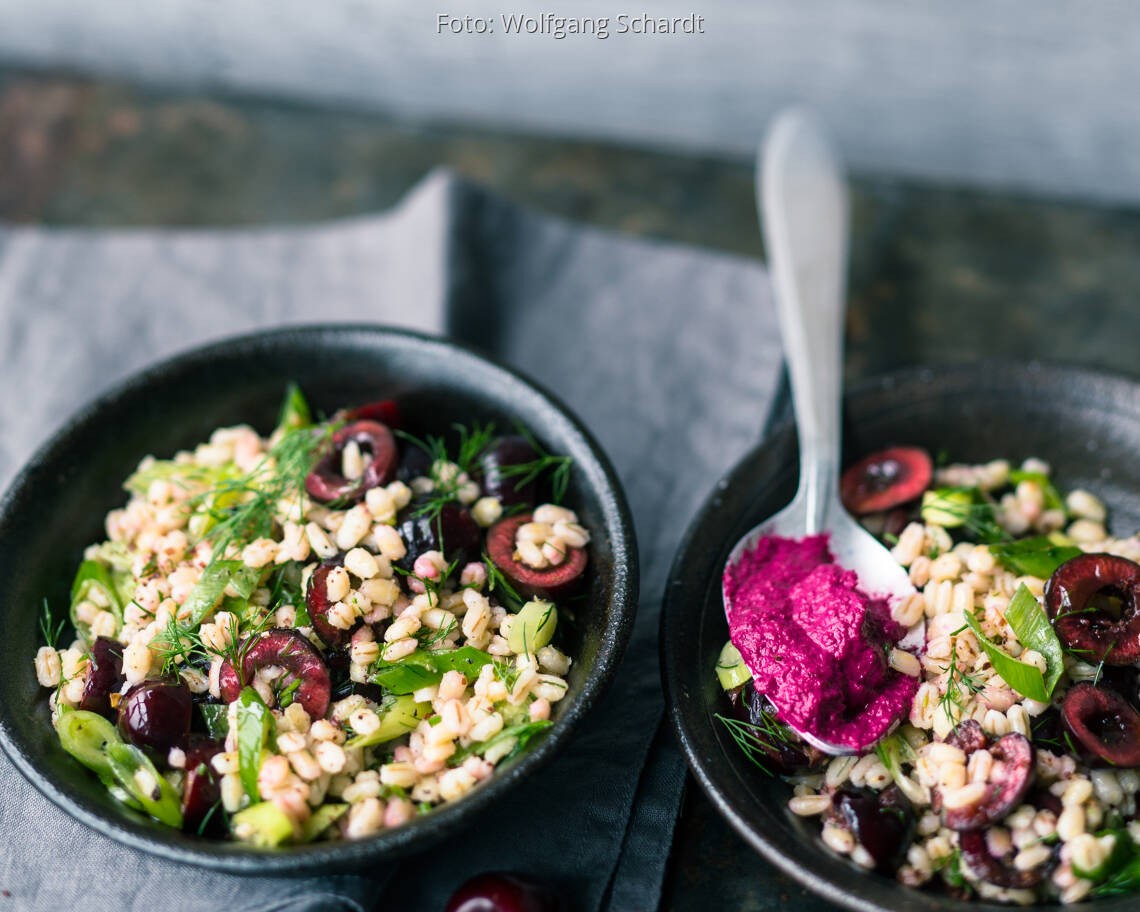mit Rote Bete, Graupen, Süßkirschen, Frühlingszwiebeln
