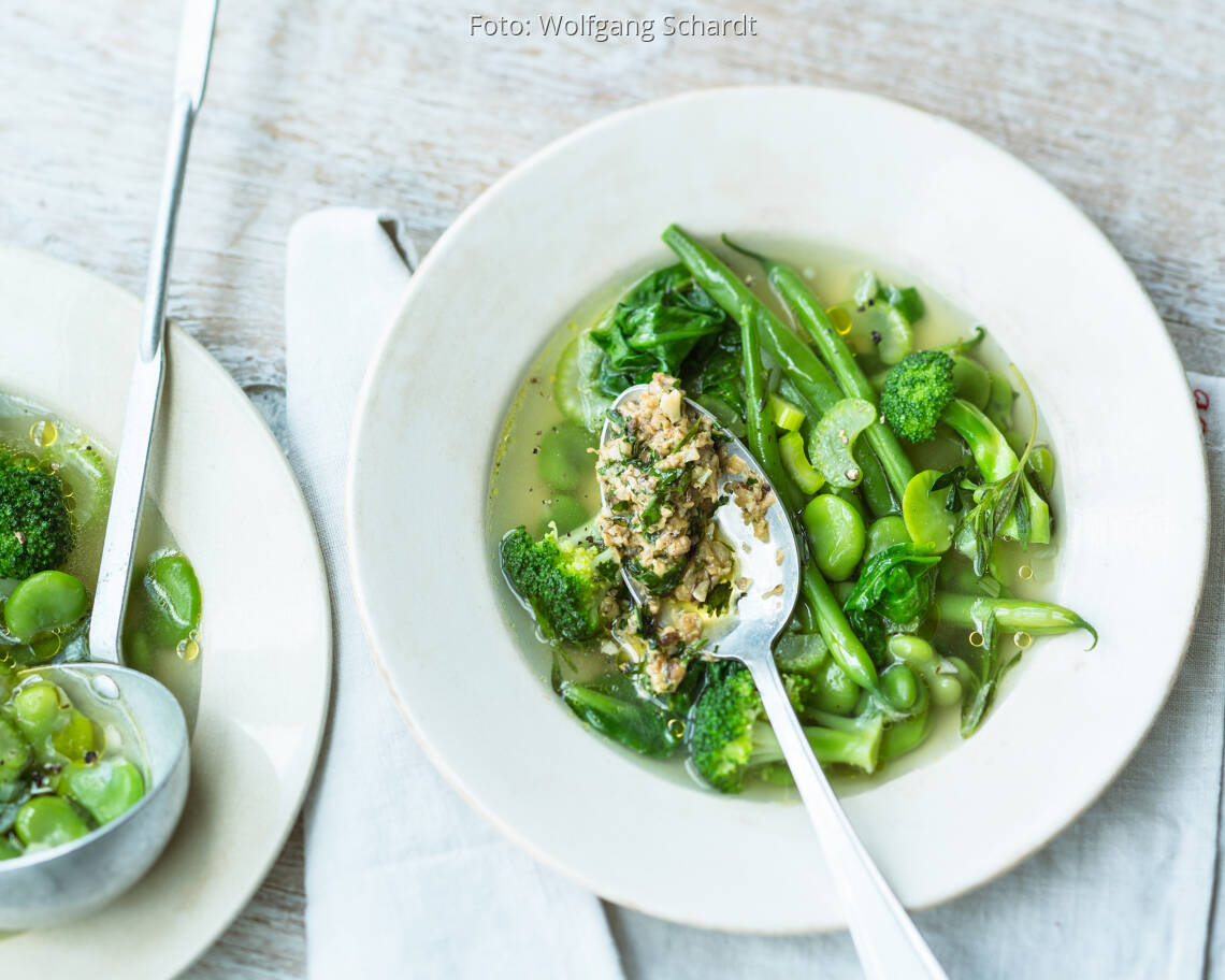 Foto: Wolfgang SchardtGrüne Minestrone mit Shiitake-Pesto