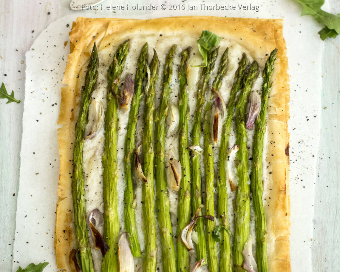 Foto: Helene Holunder © 2016 Jan Thorbecke VerlagGrüner Spargel auf Filoteig mit deftiger Kokosnusscreme
