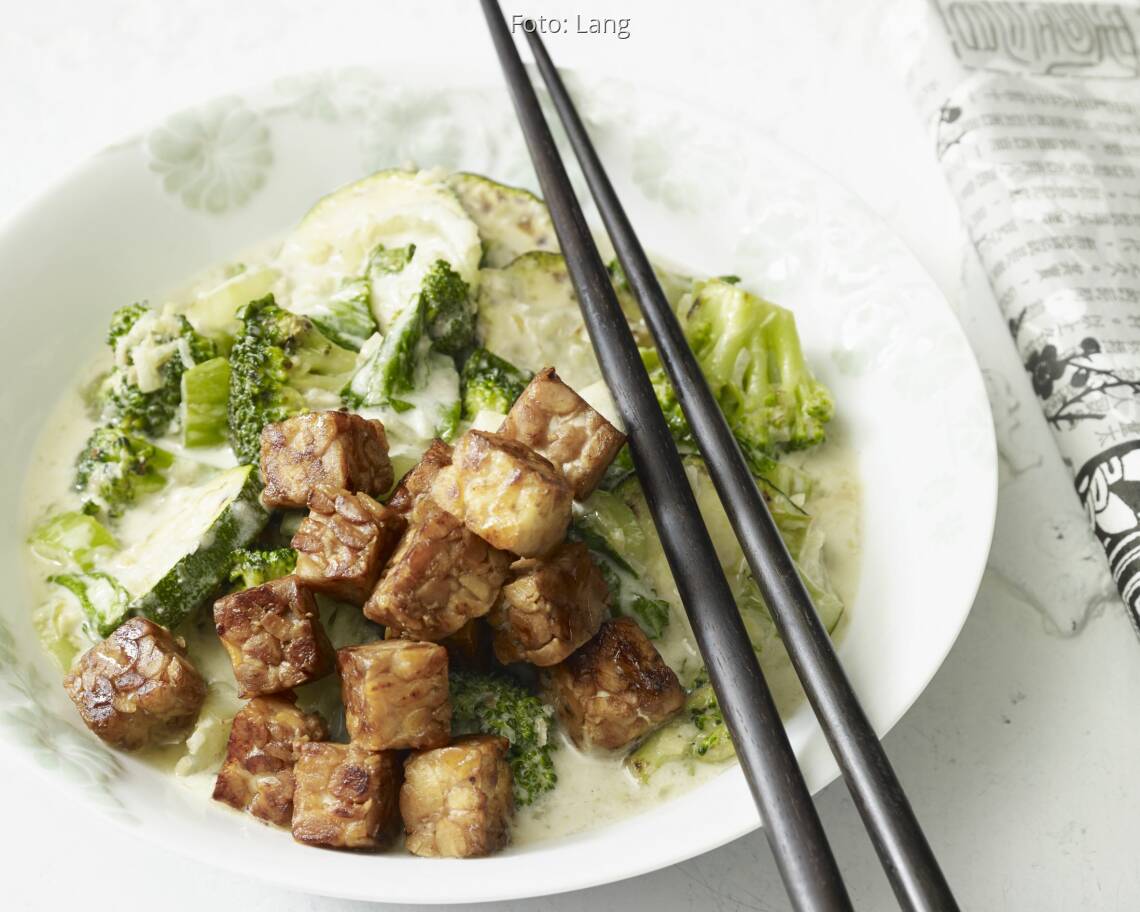 Foto: LangGrünes Gemüse mit Tempeh