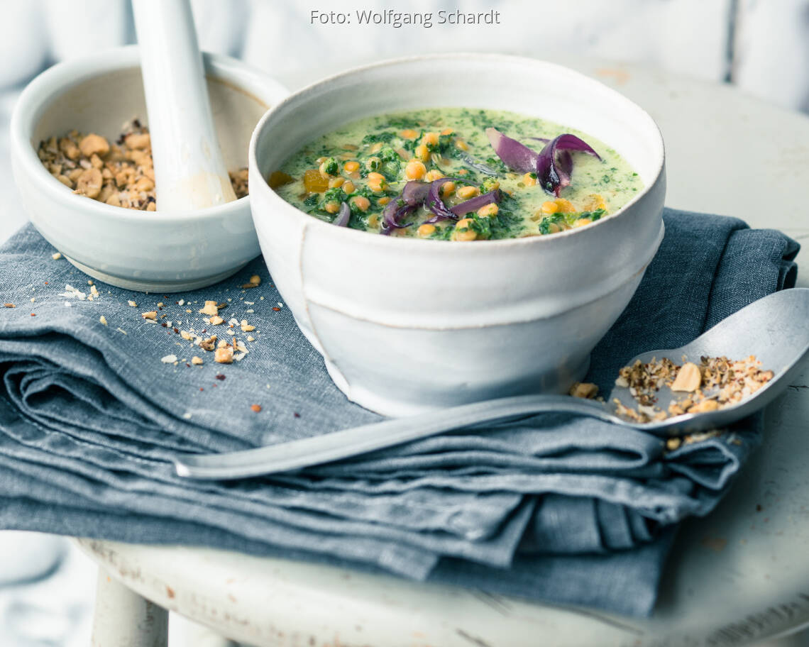 Foto: Wolfgang SchardtGrünkohl-Kokos-Suppe mit nussigem Sprinkle