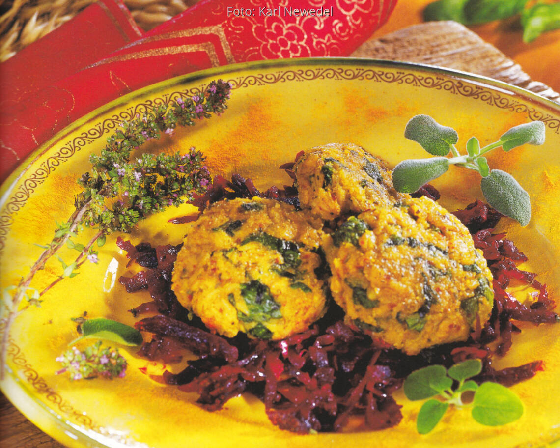 Foto: Karl NewedelHafer-Spinat-Bratlinge auf Roter Bete