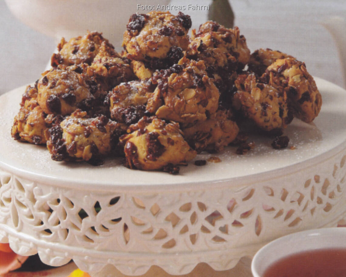 Da bei uns getrocknete Preiselbeeren meistens nur im Reformhaus erhältlich sind, kann man gut auf gedörrte Cranberries ausweichen, die auch weniger herb und feinsäuerlich im Geschmack sind. Auch getrocknete Aprikosen, die man fein hackt, passen ausgezeichnet in dieses Guetzli.