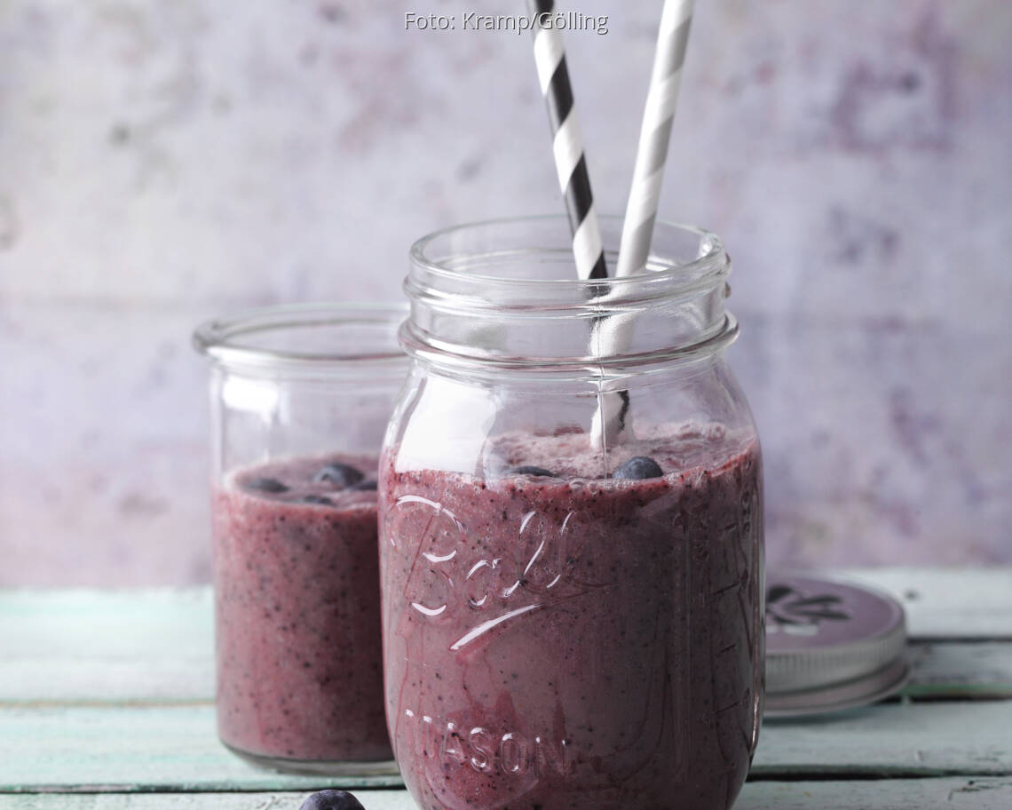 Den Smoothie in Gläser verteilen, mit den beiseitegelegten Heidelbeeren als Topping servieren und frisch genießen.