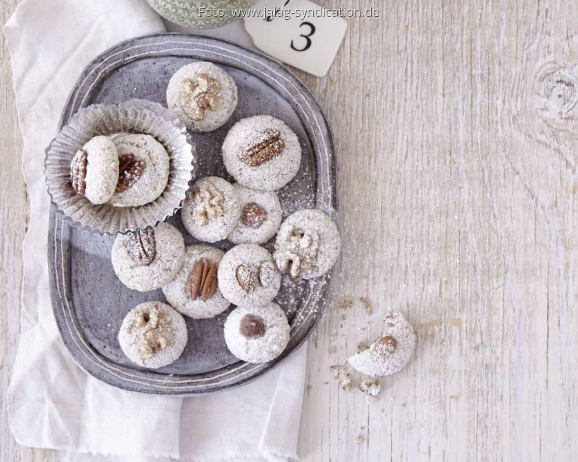 Schalenfrüchte sind alle essbaren Samen, die in einer harten Schale stecken. Zum Beispiel Mandeln, Haselnüsse, Walnüsse, Macadamianüsse, Pecannüsse, Cashewnüsse, Pistazien und Paranüsse. Ihr Vorhandensein muss auf Lebensmittelverpackungen gekennzeichnet werden.Perfekt für das Fest der Liebe: Die nussigen Busserl sind verführerisch wie Küsse – einfach himmlisch!