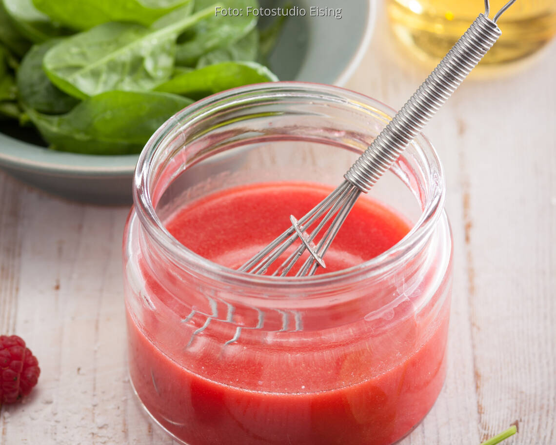 mit Himbeeren, Weißweinessig, Agavendicksaft, Senf