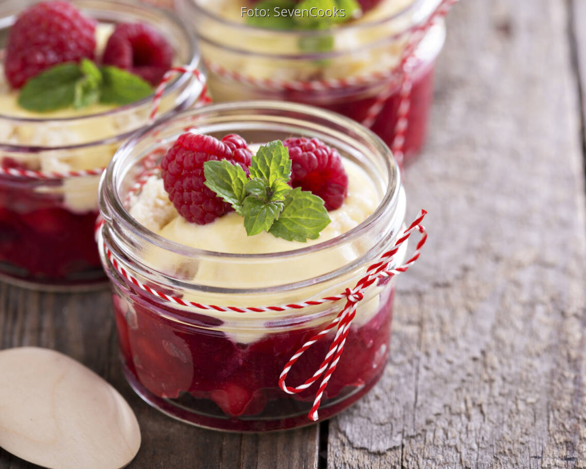 Der Himbeertraum kann auch in kleinen Dessertgläsern serviert werden.