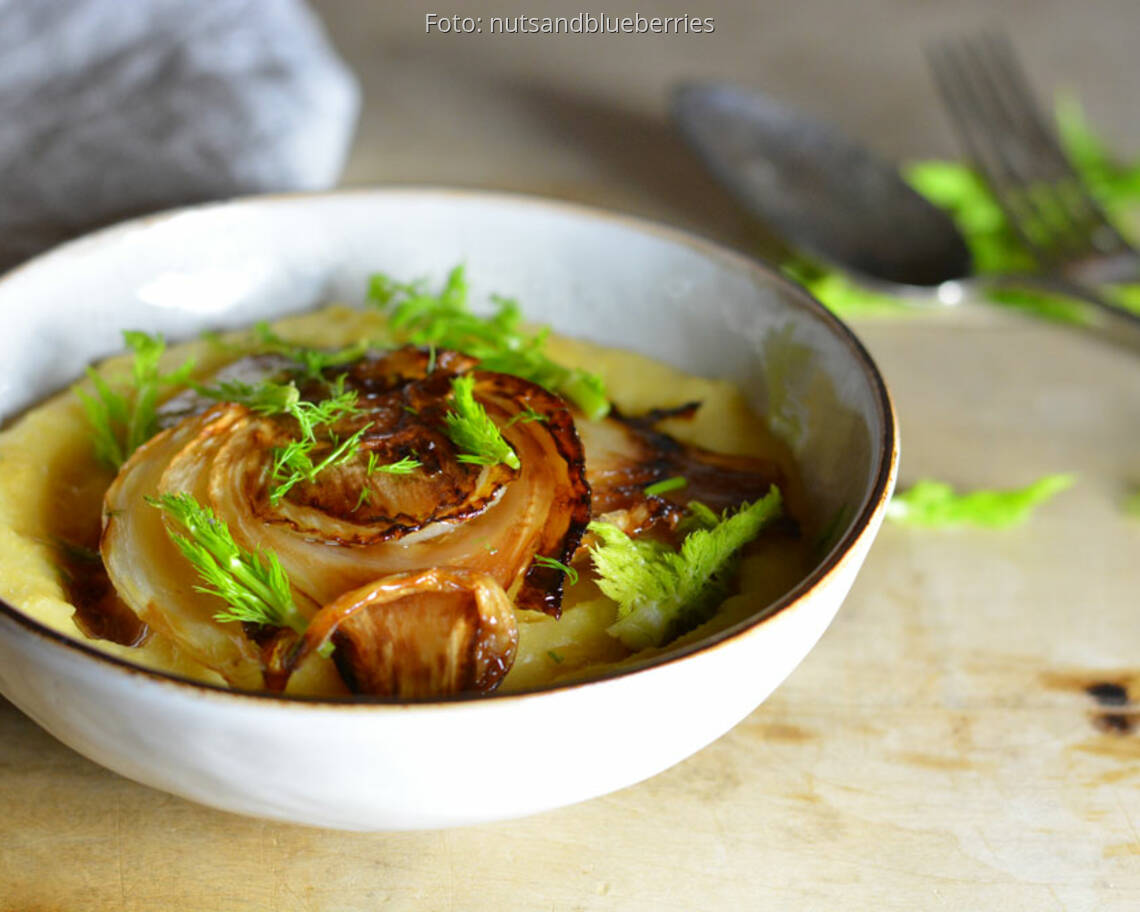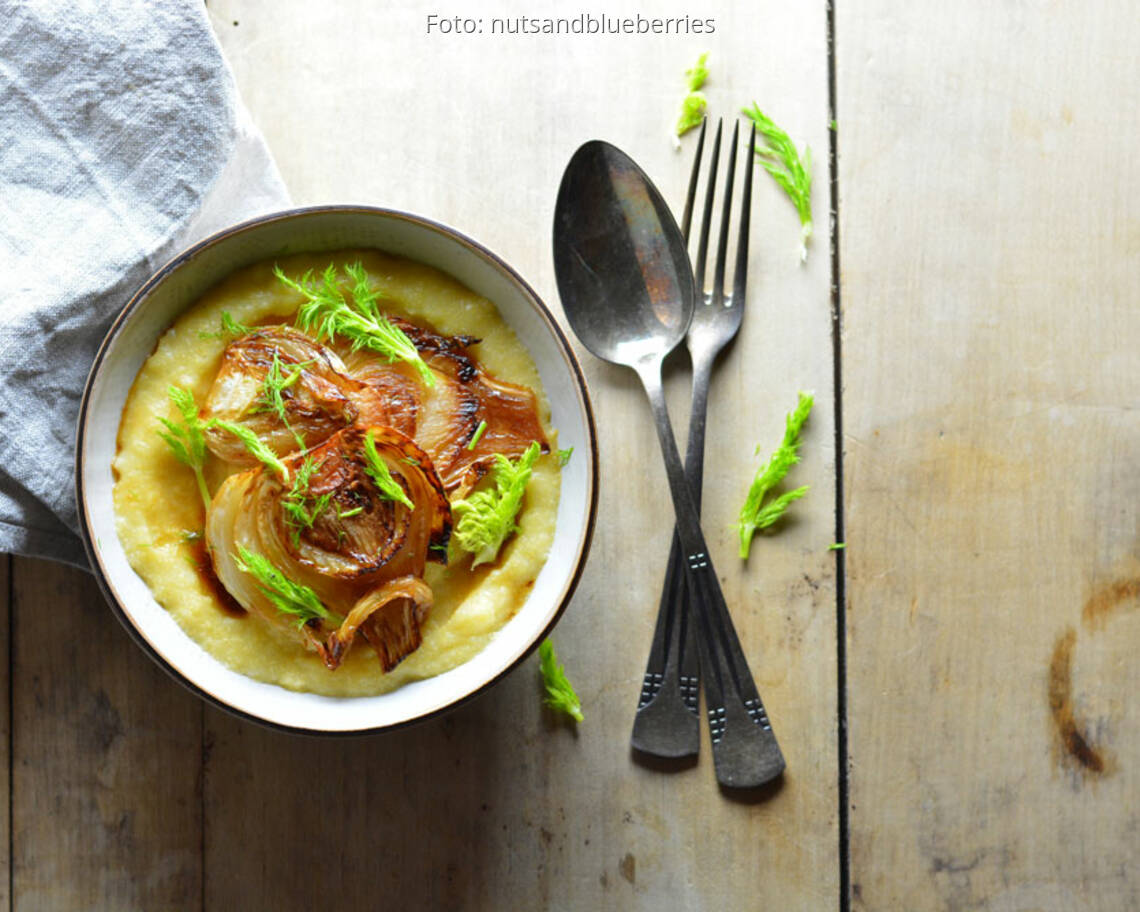 Foto: nutsandblueberriesKaramellisierter Fenchel mit Käsepolenta