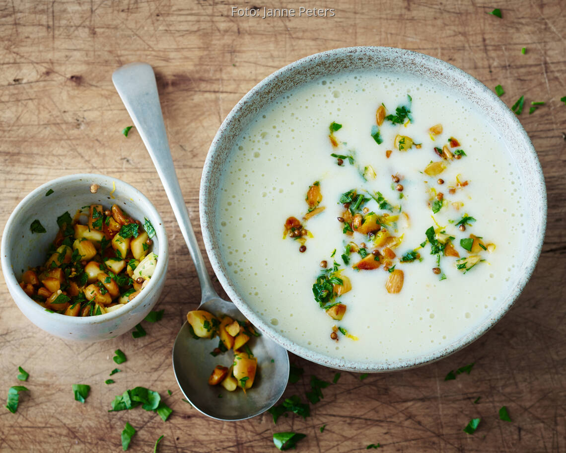 Foto: Janne PetersKartoffelsuppe mit Knuspermandeln