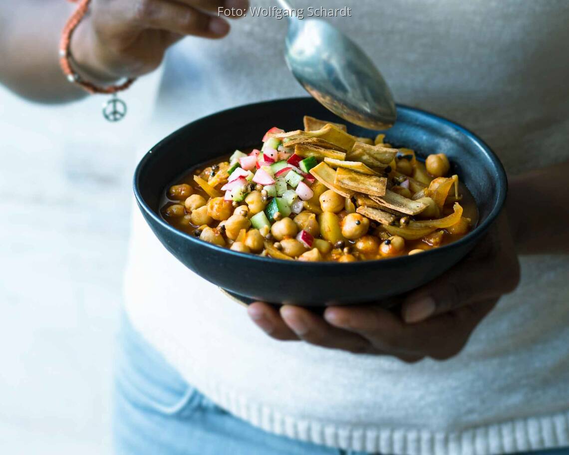 Foto: Wolfgang SchardtKichererbsen-Dal mit Tortilla-Chips