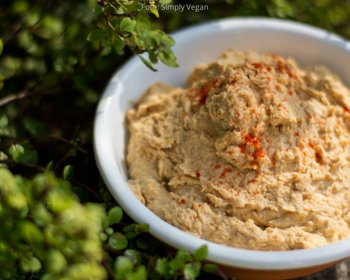 Die Kichererbsen mit dem Zitronensaft, Wasser, Knoblauchzehen, Olivenöl, Paprikapulver und Tahin zu einer glatten Paste mixen. Fals die Paste noch zu dickflüssig ist etwas mehr Wasser hinzugeben. Mit Salz abschmecken.