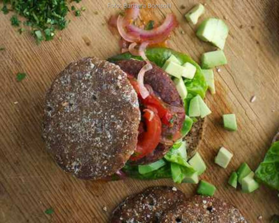Foto: Barbara BonisolliKidneybohnen-Burger mit Tomaten-Zwiebel-Salsa und Avocado