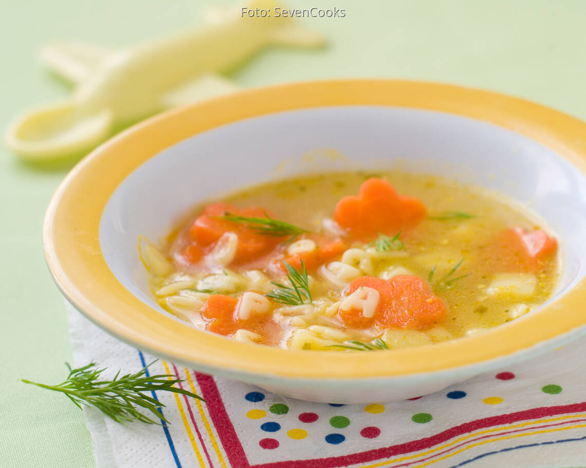 Foto: iStock.com/WiktoryKlare Gemüsesuppe mit Buchstabennudeln – vegan