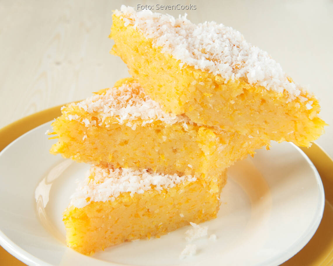 veganes Rezept von Harsha Grammingervegane Kokos-Grießschnitte in Orangensauce wirkt Vata beruhigend ↓ – Pitta beruhigend ↓ – Kapha verstärkend ↑