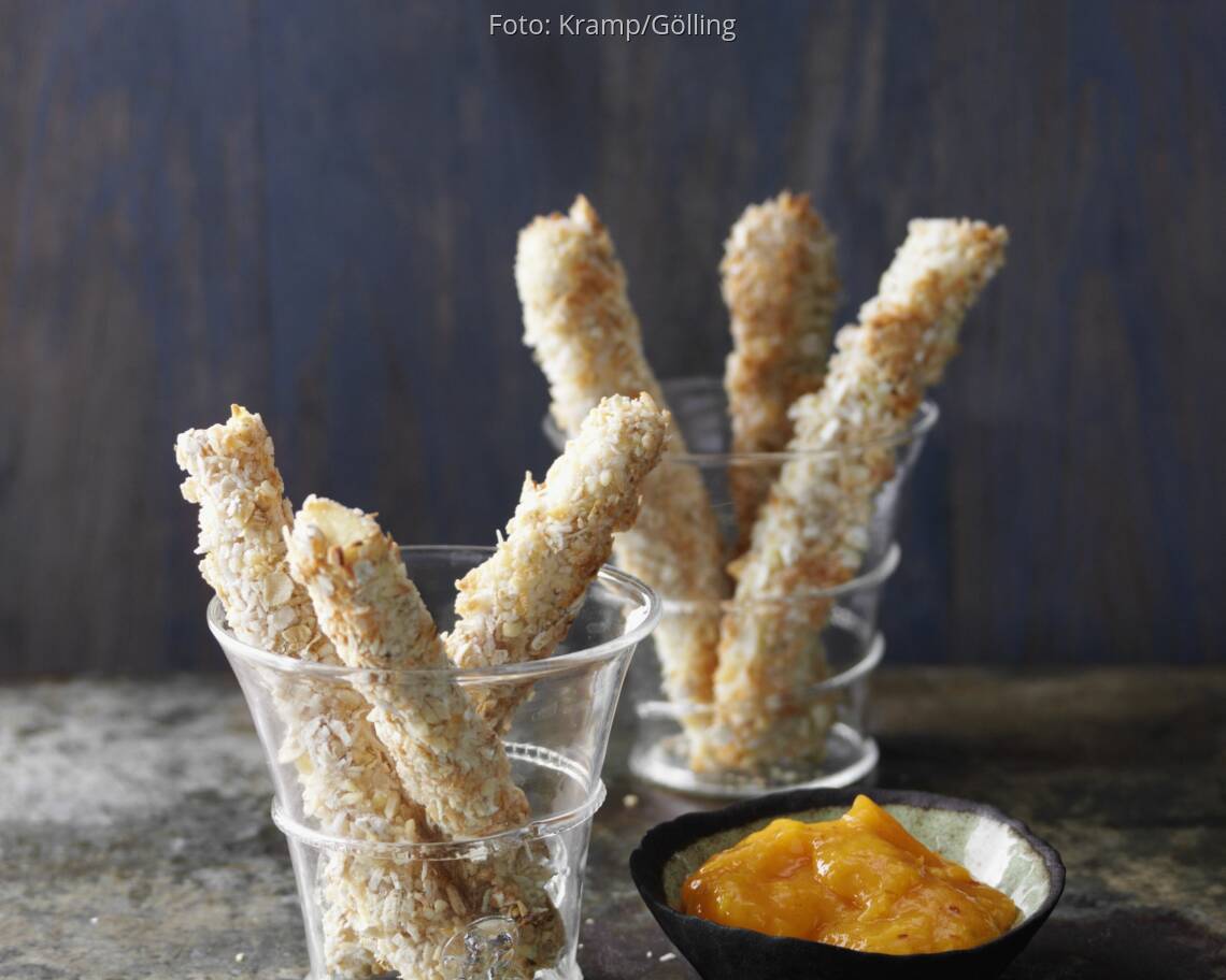 Foto: Kramp/GöllingKokos-Tofu-Dippers mit Mango-Curry-Sauce