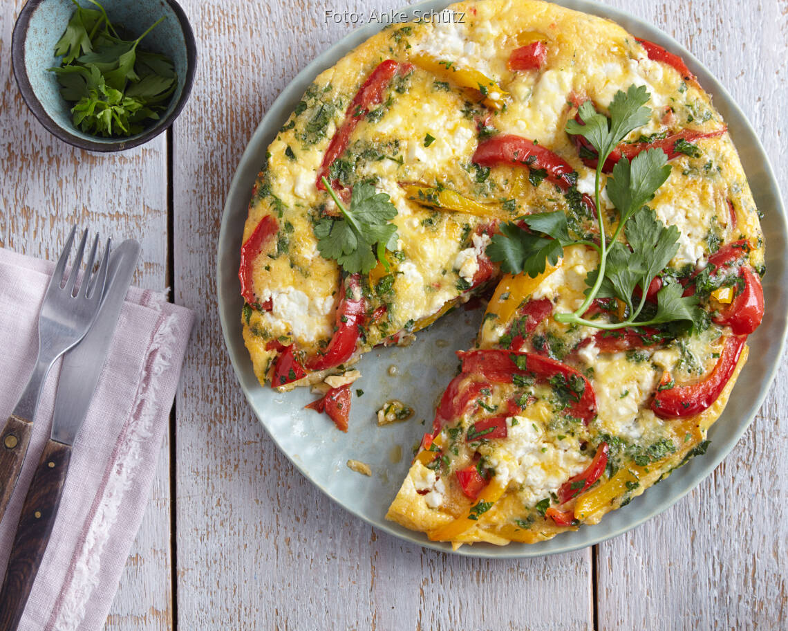 Foto: Anke SchützKräuter-Frittata mit Paprika und Feta
