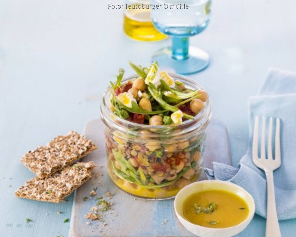 Foto: Teutoburger ÖlmühleLinsen-Kichererbsen-Salat mit Honig-Balsamico-Vinaigrette