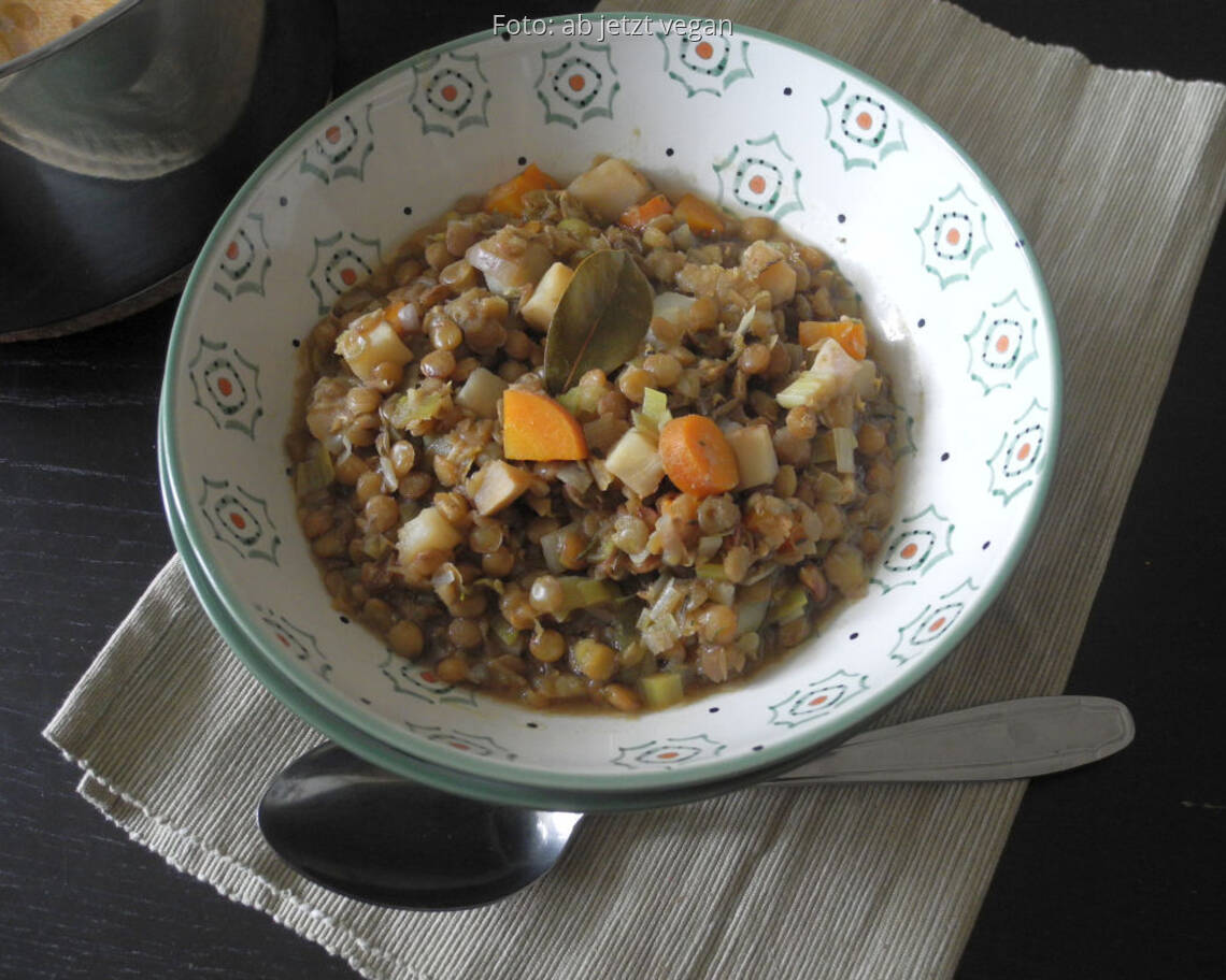 Packungsanweisung der Tellerlinsen beachten! Manche müssen über Nacht eingeweicht werden und die Kochdauer kann stark variieren!
