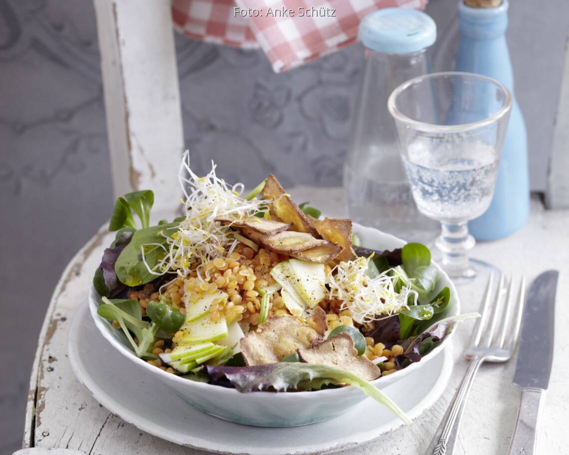 Foto: Anke SchützLinsensalat mit Räuchertofu-Chips