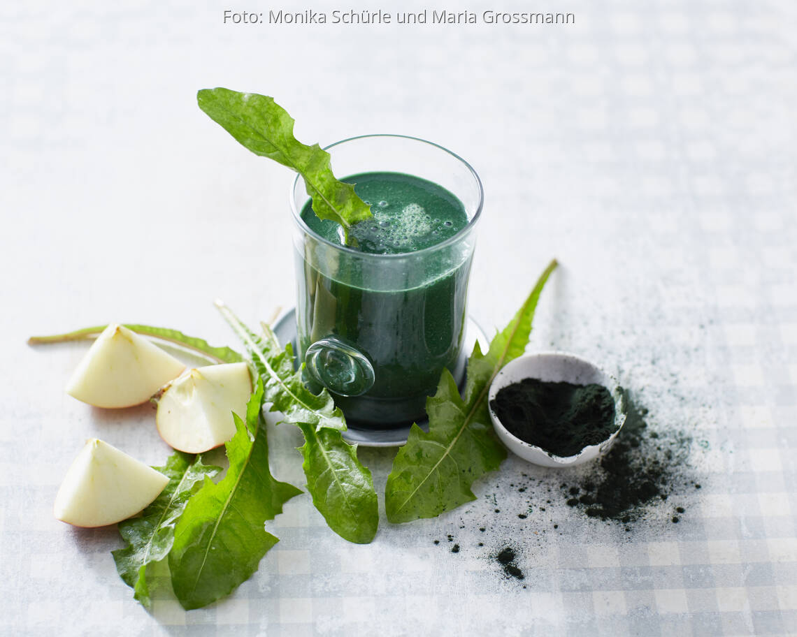 Den Löwenzahn waschen und grob zerkleinern, mit den Äpfeln, der Petersilie, dem Spirulinapulver und dem Mandeldrink in den Mixer geben. Alles auf höchster Stufe mixen, bis der Smoothie schön cremig ist. Den Smoothie auf Gläser verteilen und gleich genießen.