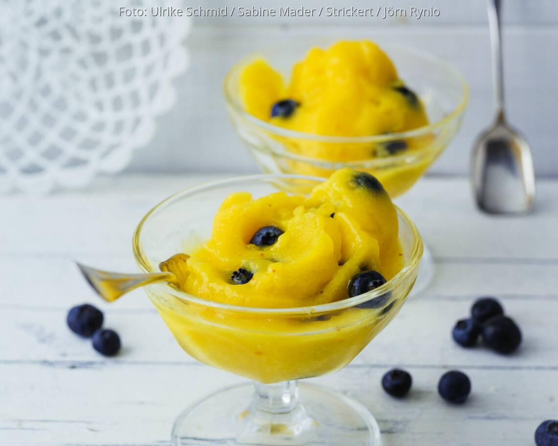 Foto: Jörn RynioMango-Orangen-Ingwer-Sorbet mit Heidelbeeren