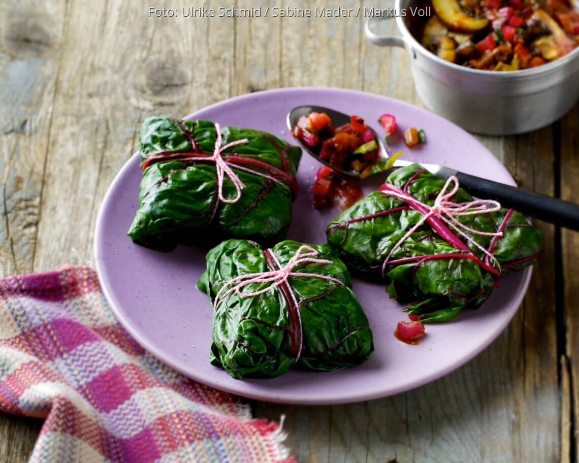 Foto: Ulrike Schmid / Sabine Mader / Markus VollMangoldpäckchen mit Pilzen und Tomaten