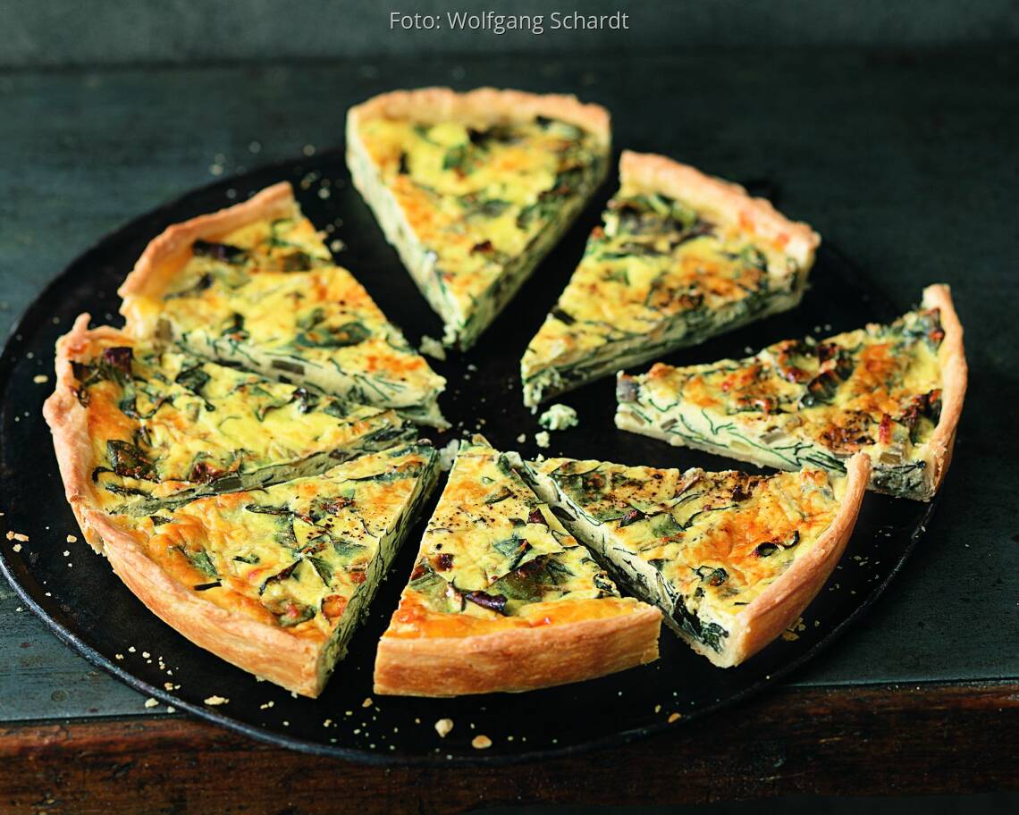 Backofen auf 220° vorheizen, Form einfetten. Teig auf wenig Mehl ausrollen, in die Form legen, dabei einen Rand formen. Ricotta, Sahne und Eier verquirlen, mit Salz, Pfeffer und Muskatnuss würzen. Mangold evtl. ausdrücken, mit Parmesan auf dem Teig verteilen, Guss darübergießen. Im Ofen (Mitte) in 30–35 Min. goldbraun backen.