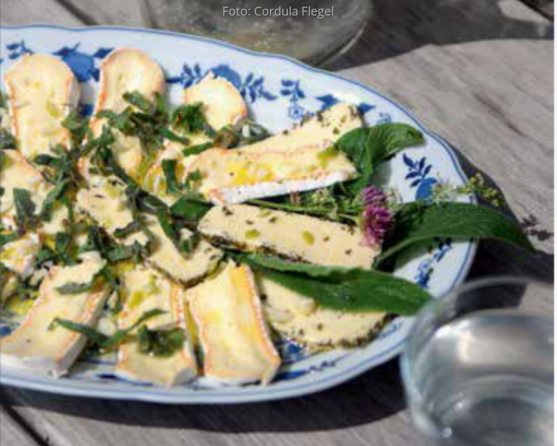 mit Rotschimmel-Camembert, Rotkleeblüten
