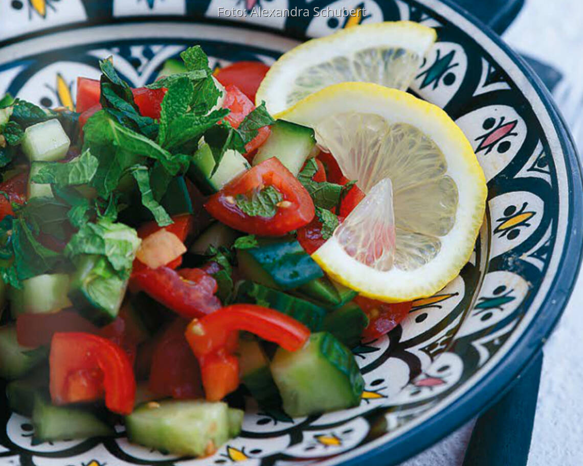Foto: Alexandra SchubertMarokkanischer Tomaten-Gurken-Salat mit frischer Pfefferminze