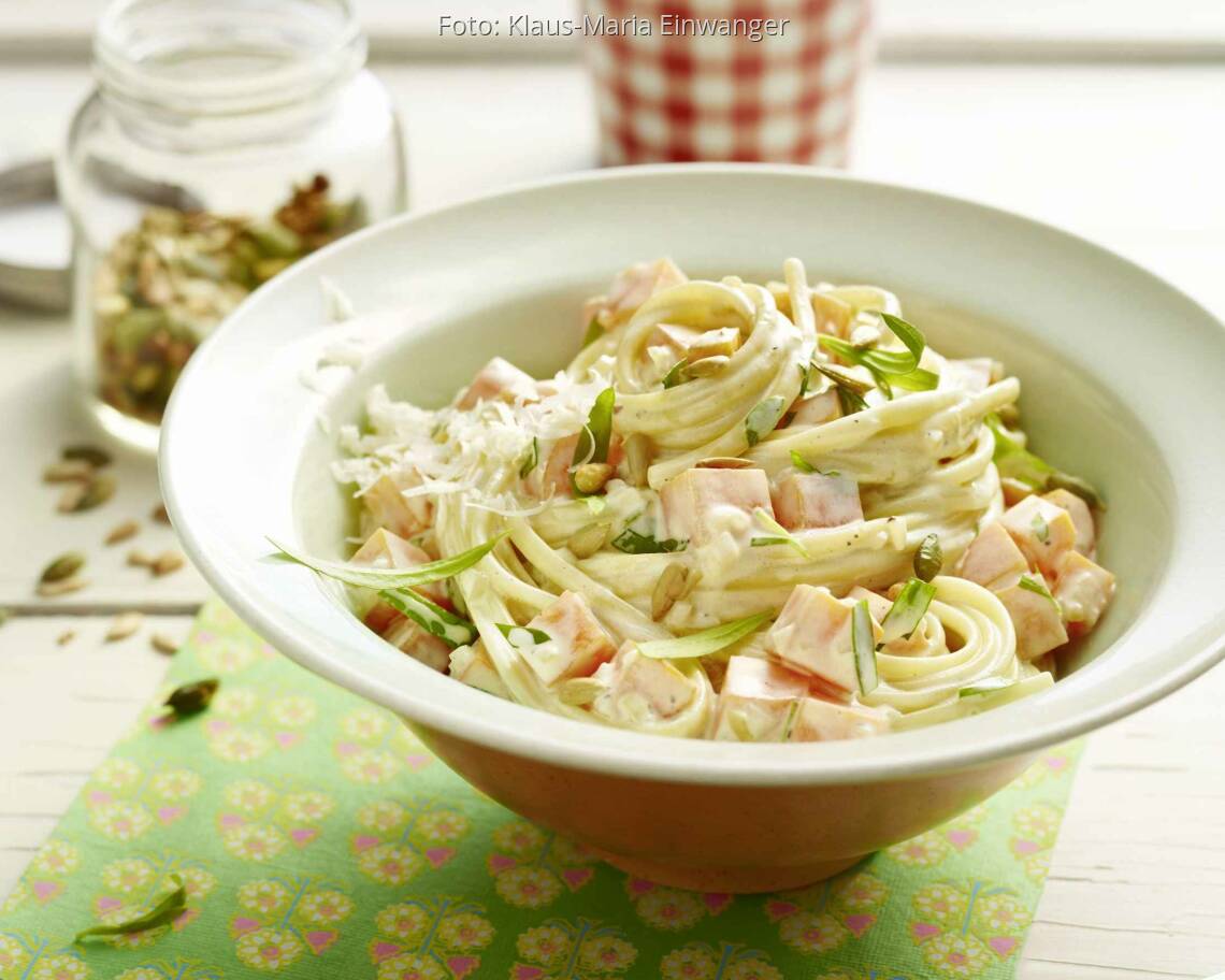 Foto: Klaus-Maria EinwangerMöhren-Pasta mit Kerne-Crunch