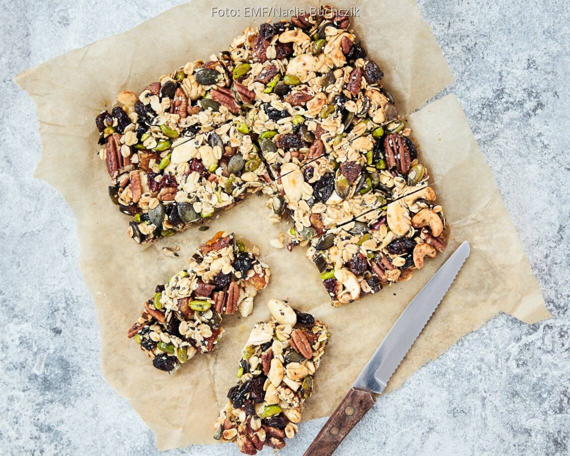 Foto: EMF/Nadja BuchczikNuss-Power-Riegel mit Honig und Chia-Samen