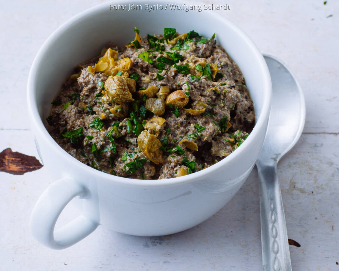mit schwarze Oliven, griechischer Joghurt, Kapern, Petersilie