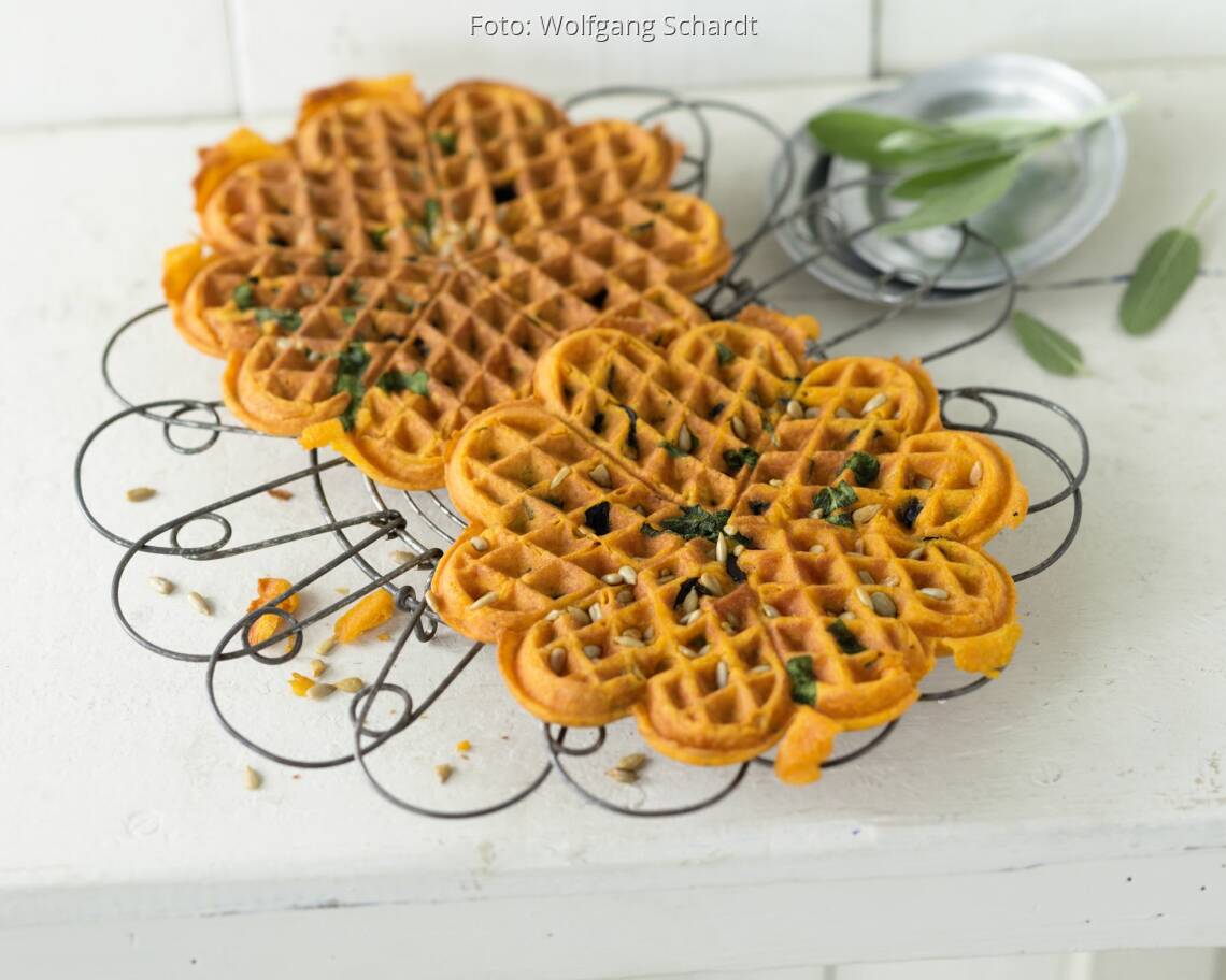Das Waffeleisen vorheizen und die Backflächen einfetten. 2 EL Teig mittig auf die untere Backfläche geben und das Waffeleisen schließen. Die Waffel in ca. 2 Min. knusprig-hellbraun backen, herausnehmen, auf ein Kuchengitter legen und mit dem übrigen Teig genauso verfahren.