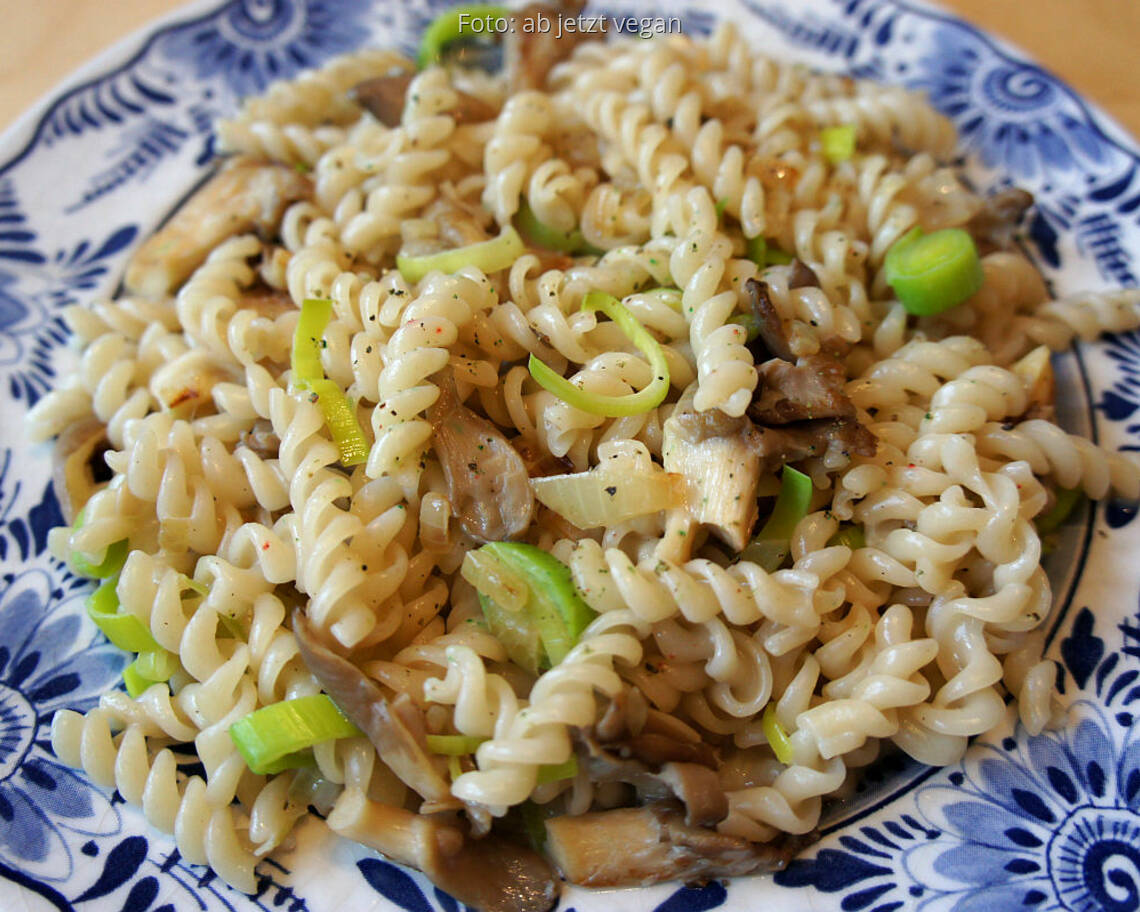mit Vollkornnudeln, Austernpilze, Zwiebel, Lauch