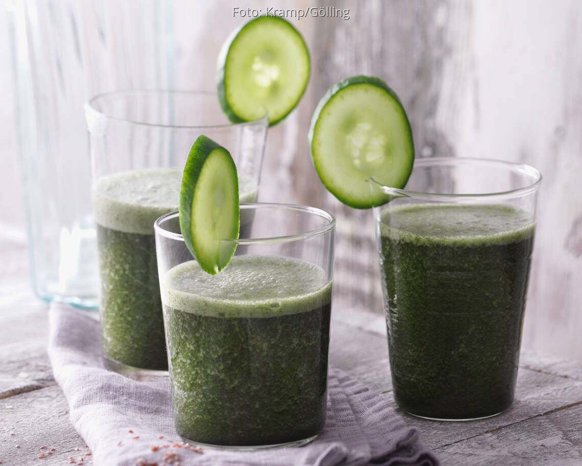 Foto: Kramp/GöllingPikanter Smoothie mit Algen, Gurke und Flohsamen