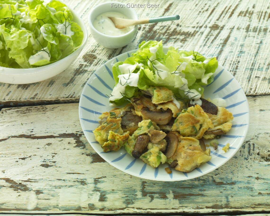 Foto: Günter BeerPilz-Schmarren mit Romanasalat