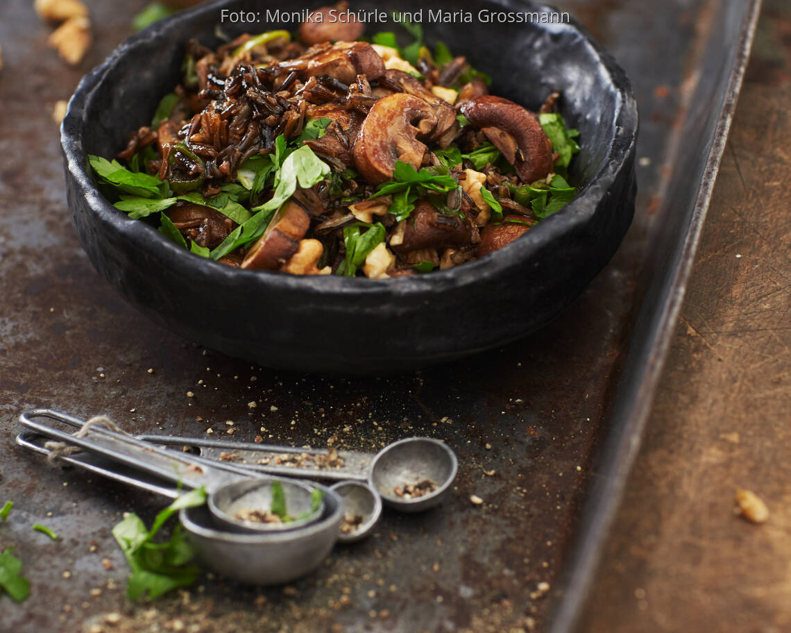 Foto: Monika Schürle und Maria GrossmannPilzsalat mit schwarzem Reis und Walnuss-Vinaigrette