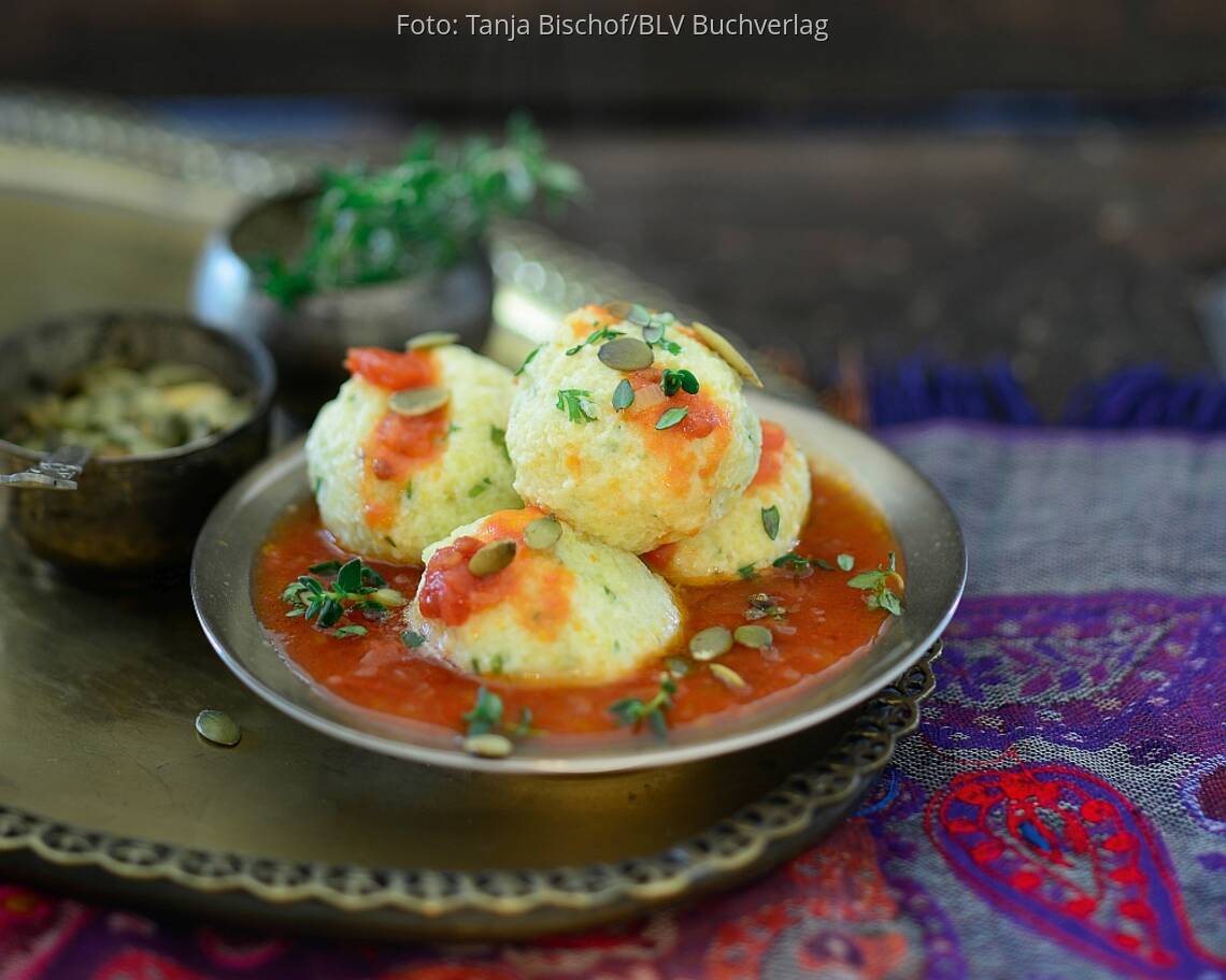 Foto: Tanja Bischof/BLV BuchverlagPolentaknödel an Tomaten-Kürbiskern-Salsa